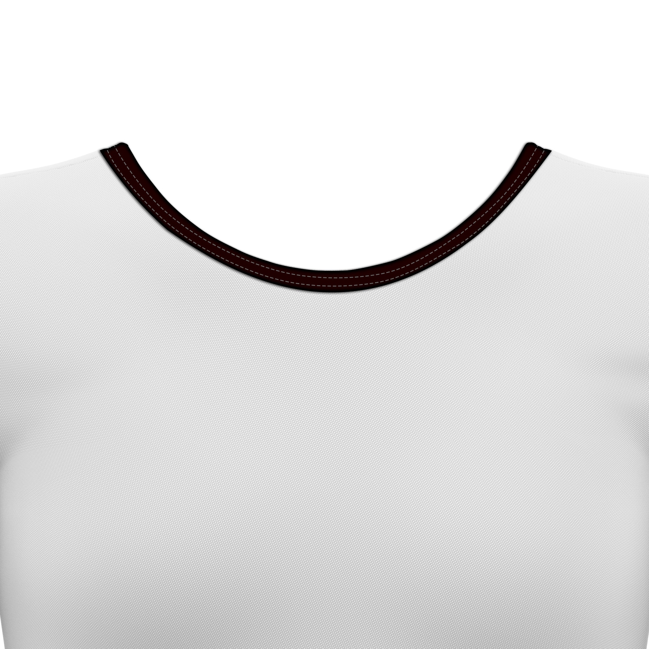 This leotard is made with Black Mystique Foil Binding. The binding neckline adds sleek definition and durability to the leotard. Finished with a professional twin needle coverstitch, it ensures lasting strength, stretch, and comfort. This detail provides a secure, polished edge that enhances both performance and style, making it ideal for demanding gymnastics training and competition wear.